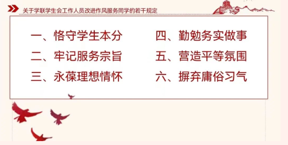 3.院学生会主席团成员就上级文件详细解读、对学生会深化改革内容、学生会工作条例进行分析。
