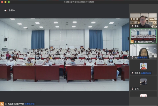 和田职业技术学院工艺美术系主任赵晟媛主持本次活动,和职院工艺美术系党支部书记及全体教师、学生,天津职业大学皇冠登录入口welcome下载老师、学生出席。