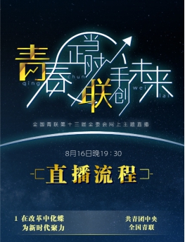 2020年8月16日19:30至23:00,“学习强国”学习平台、央视新闻客户端及@共青团中央 微信、微博、B站、快手、抖音、微视、斗鱼、虎牙、今日头条、百家号官方账号等平台将开展“青春正当时,联手创未来”网上直播。请锁定8月16日晚7:30各平台直播间,感受理想家国,感知青春和未来,青春正当时,联手创未来,我们在路上!