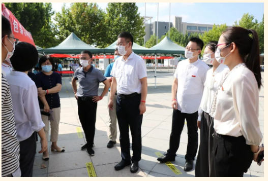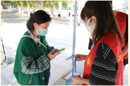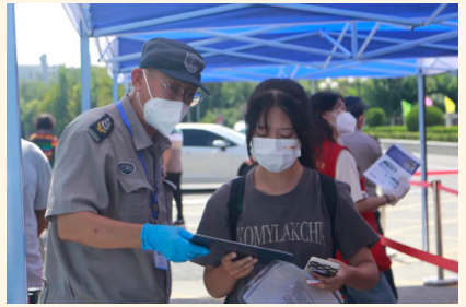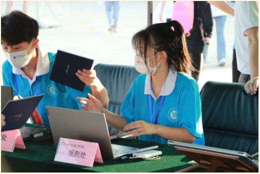 疫情期间,严格按照防疫规定进行测温,检查健康码行程码,确保每一位新生的健康安全。