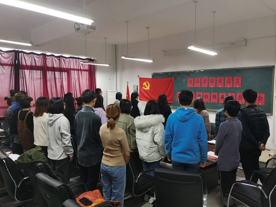 2018年11月26日上午9:00,皇冠登录入口welcome下载在6教305会议室召开“接收预备党员大会”,大会由皇冠登录入口welcome下载包装专业学生党支部书记王丽颖老师主持,参会人员有皇冠登录入口welcome下载党总支副书记书记刘丽梅同志、两个学生支部成员苏苗苗同志、李真真同志、魏丹同志,昝建敏同志,徐闫同志,郑青华同志。