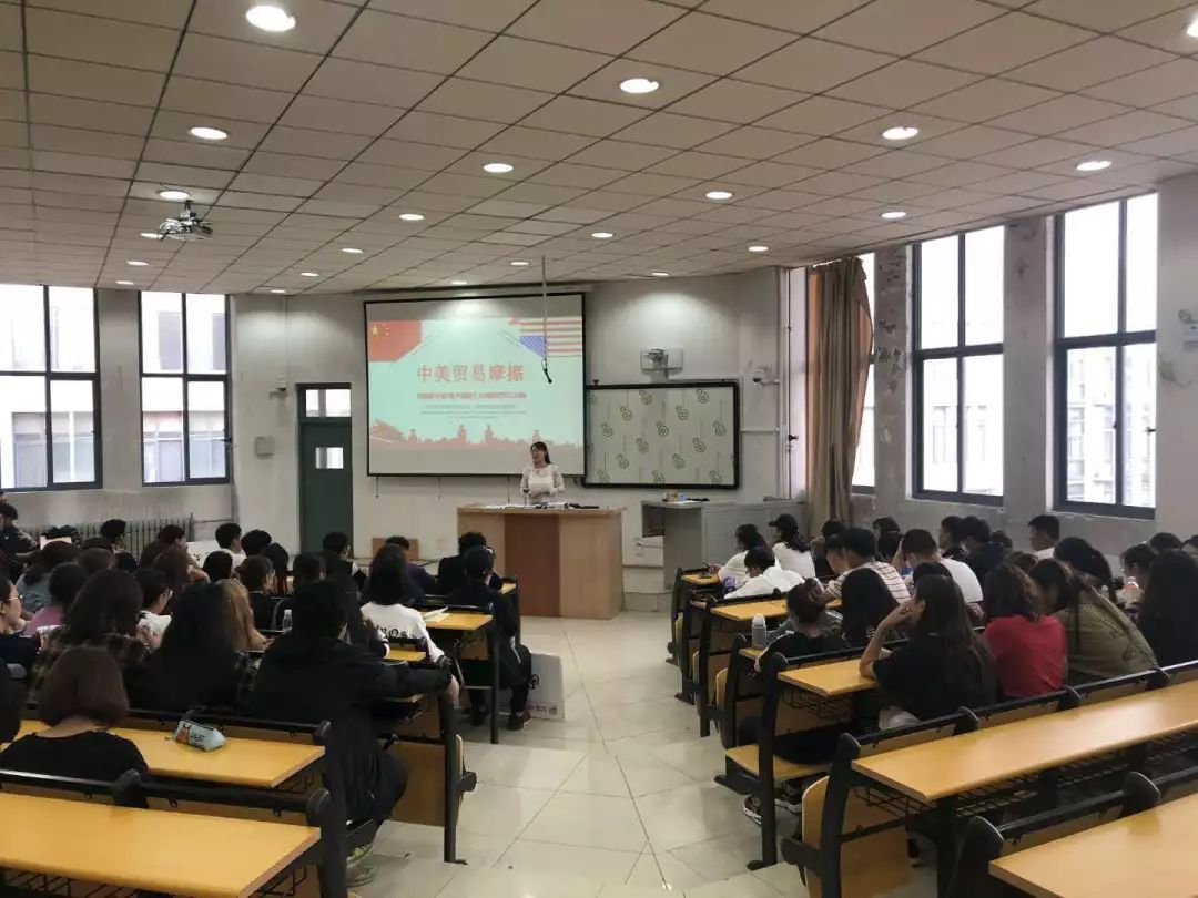 同日下午,社科部教师在西阶二楼给新生们讲解了中美贸易,同学们受益匪浅。