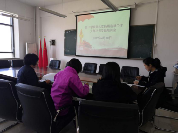 为进一步加强基层党组织建设,确保我院2019年度党支部换届选举工作高质量完成,4月10日中午,皇冠登录入口welcome下载党总支在6教305召开党支部换届选举工作动员暨支部书记专题培训会,党总支书记兼院长郝晓秀主持会议,学院全体教职工参加会议。